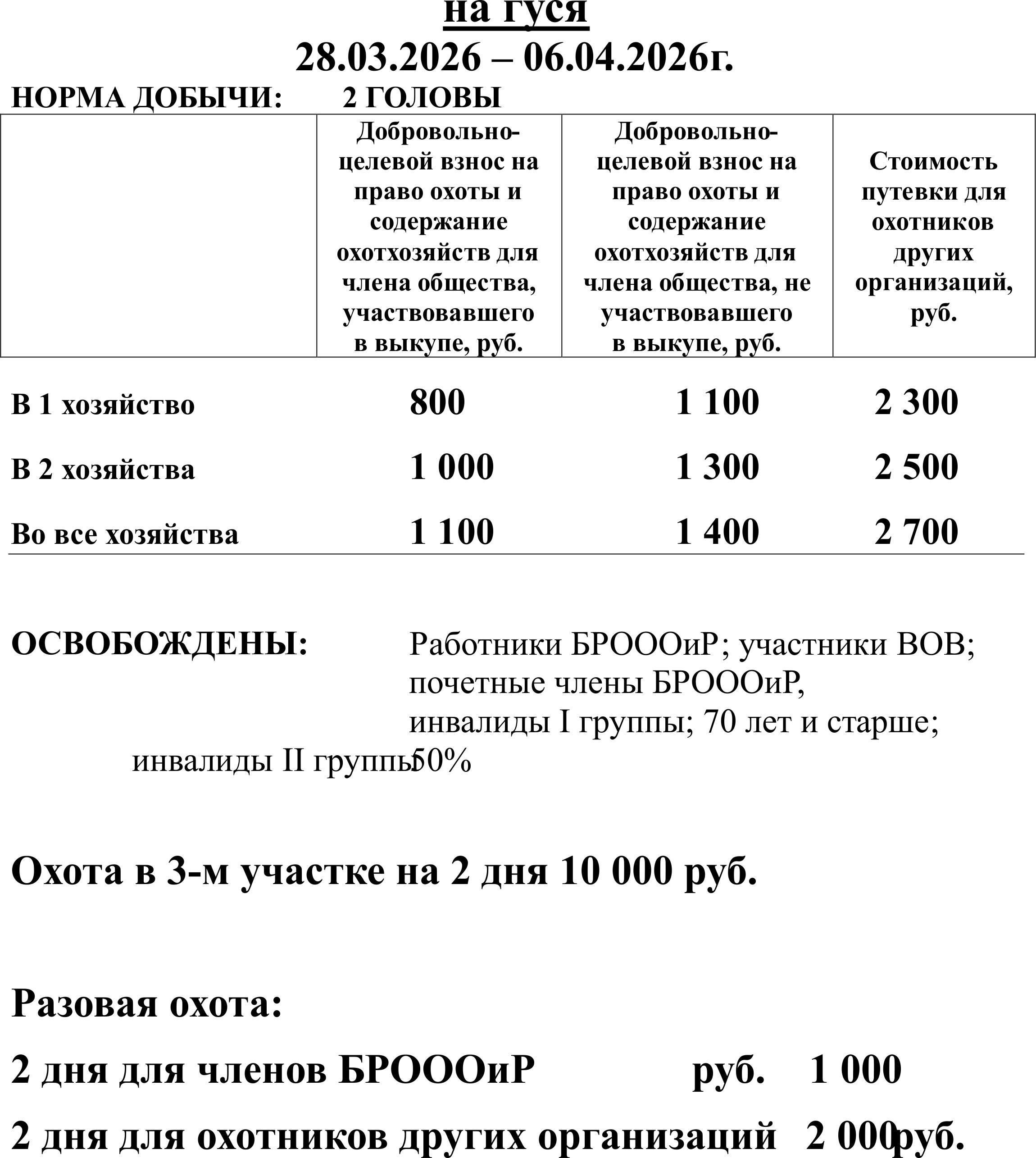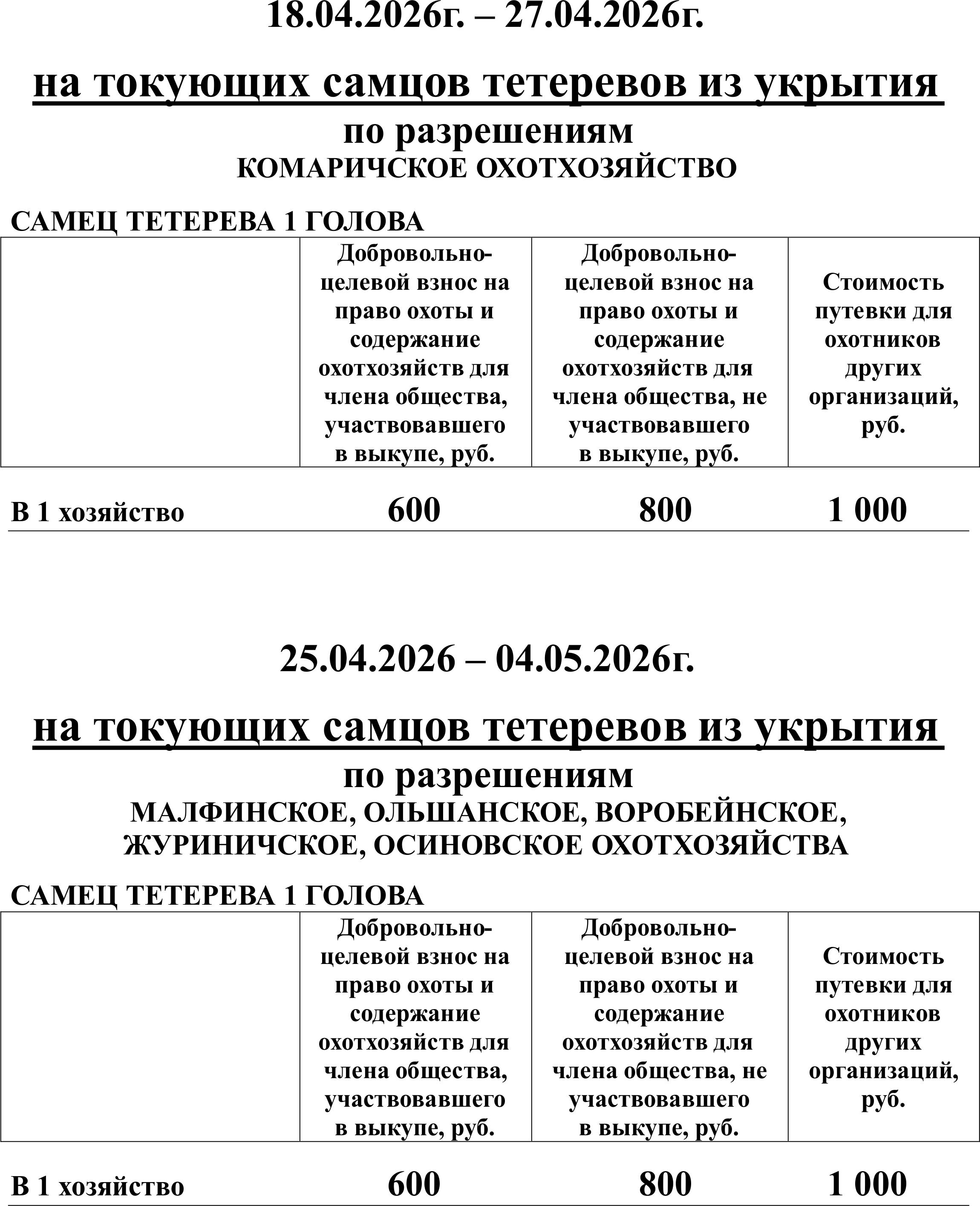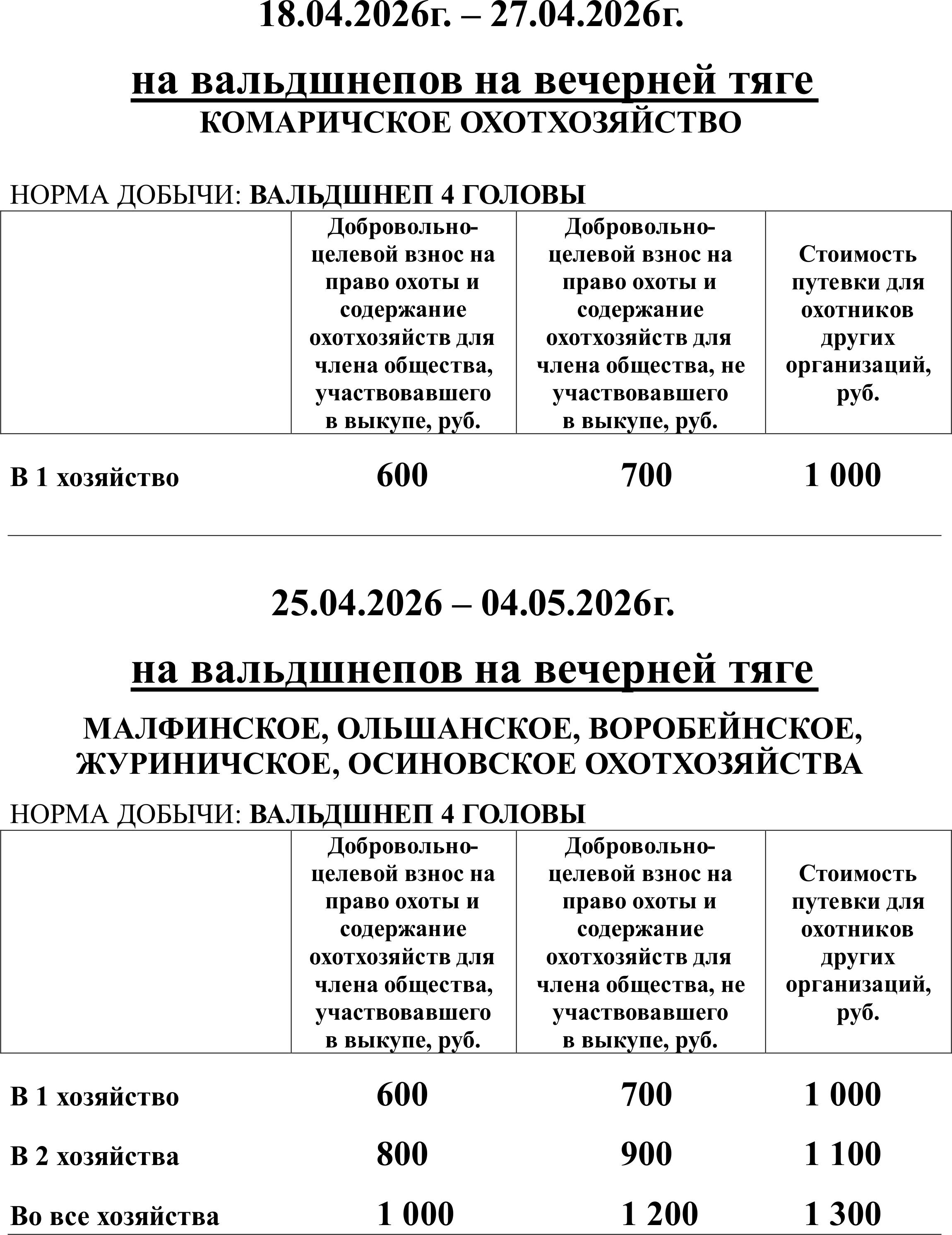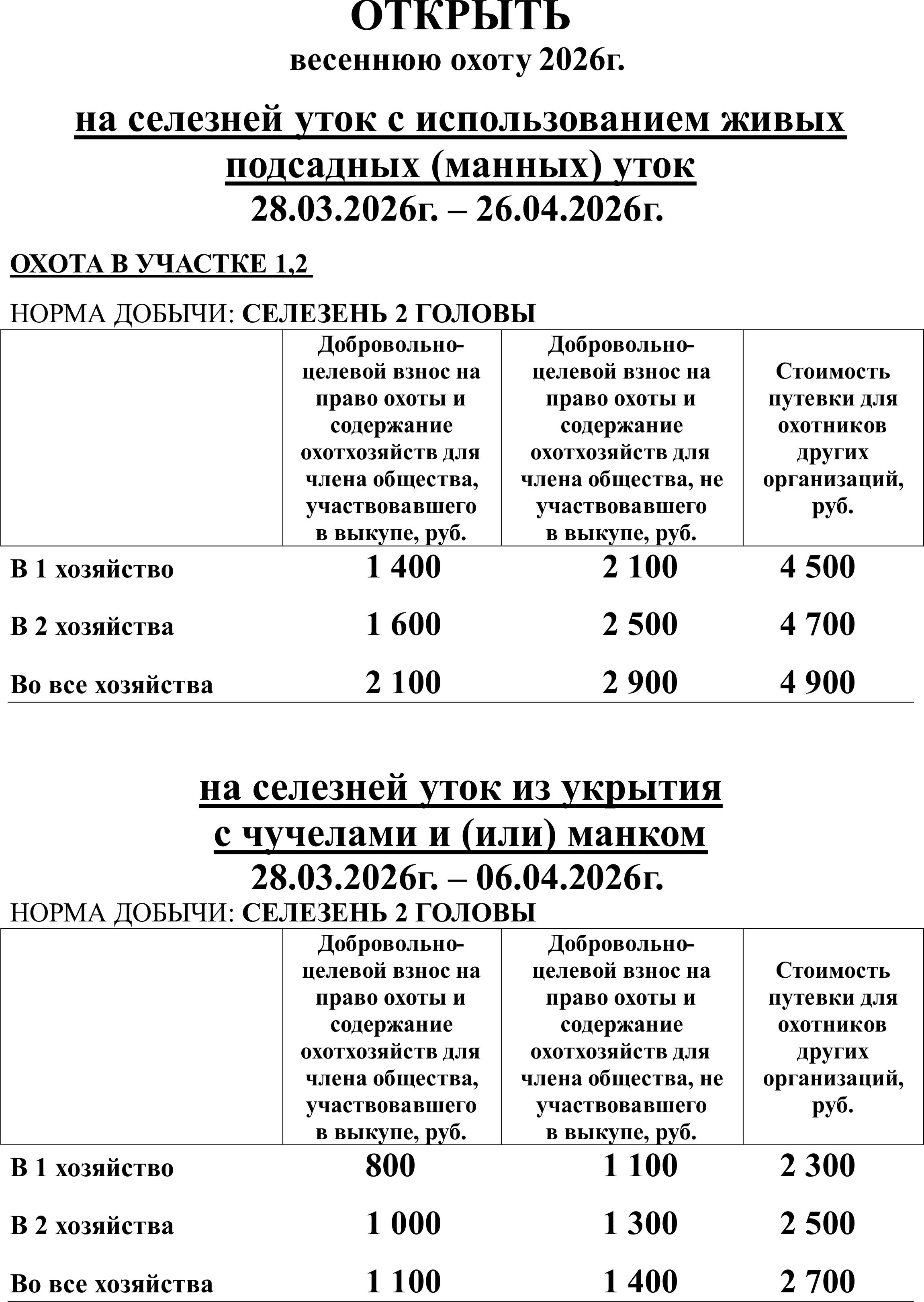 Цены на весеннюю охоту 2026